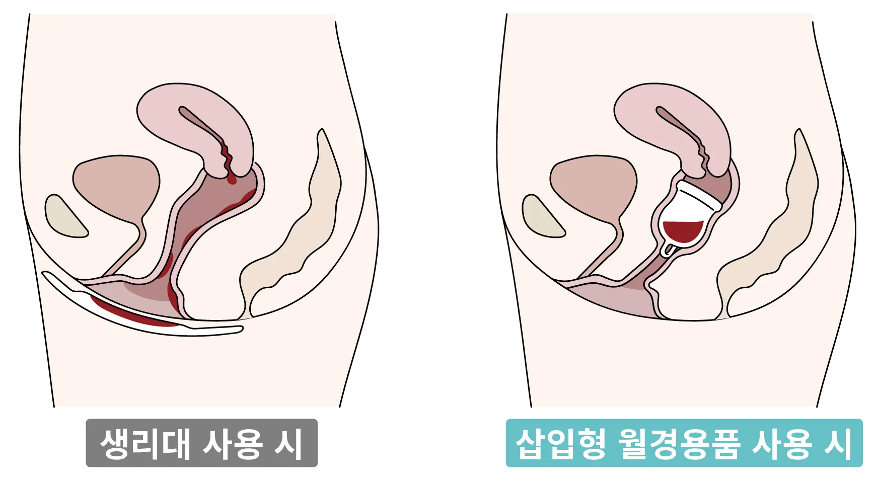 생리대를 사용하는 경우, 월경혈이 배출되는 과정에서 질 내벽에 잔혈이 남게 됩니다. 반면 월경컵을 사용하는 경우, 질 내벽에 월경혈이 거의 묻지 않기 때문에 월경 주기 끝 무렵에 잔혈이 배출되던 기간이 줄어들어 월경 주기가 짧아지는 것입니다.