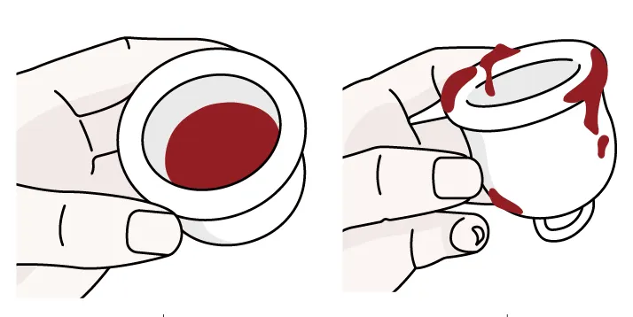 월경컵 주머니 안에 혈이 담긴 흔적이 거의 없고, 월경컵 겉면 위주로 혈이 묻어 있었다면 월경컵이 구겨진 채 삽입이 되었거나 경부 아래에서 벗어나 잘못 착용 되었기 때문입니다.