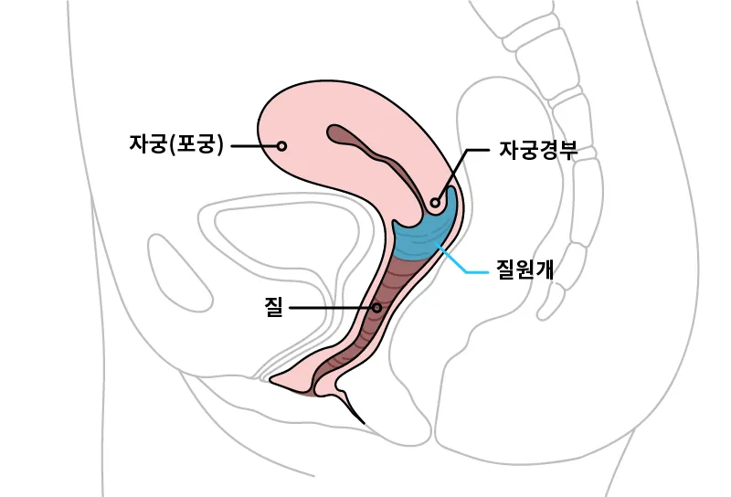 질원개는 질의 윗부분이 자궁경부의 돌출부를 에워싸면서 생기는 오목한 공간이에요. (놀랍게도 진짜 비어있는 곳이랍니다) 방광과 가까운 곳을 전질원개, 그 반대를 후질원개라고 부릅니다. 삽입형 월경용품 중 월경디스크가 이 질원개 부분에 끼워 사용하죠.