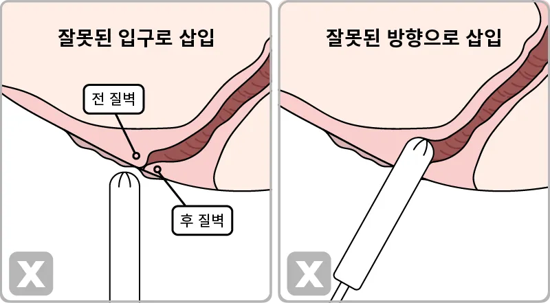 아래 그림처럼 삽입하면 질 안에 넣는 게 아니라 질벽을 찌르고 있는 것과 다름이 없답니다. (아플거에요!)
